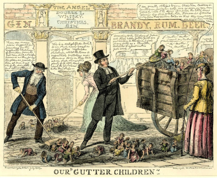 Que se condenara a niños mayores de 8 años que habían cometido pequeños delitos a trabajos forzados en las colonias, o que simplemente se los raptara para embarcarlos y entregárselos a colonos en lo que hoy es EEUU o Canadá era algo que Inglaterra había comenzado a hacer en 1640 y había sido legislado ya en 1780.